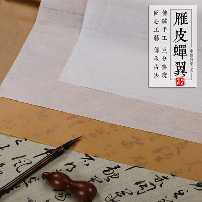 四尺手工超薄蝉衣宣纸仿古色扎花雁皮蝉翼熟宣纸工笔画毛笔书法国画专用纸创作用临摹拓印小楷心经抄经作品纸 虎窝淘
